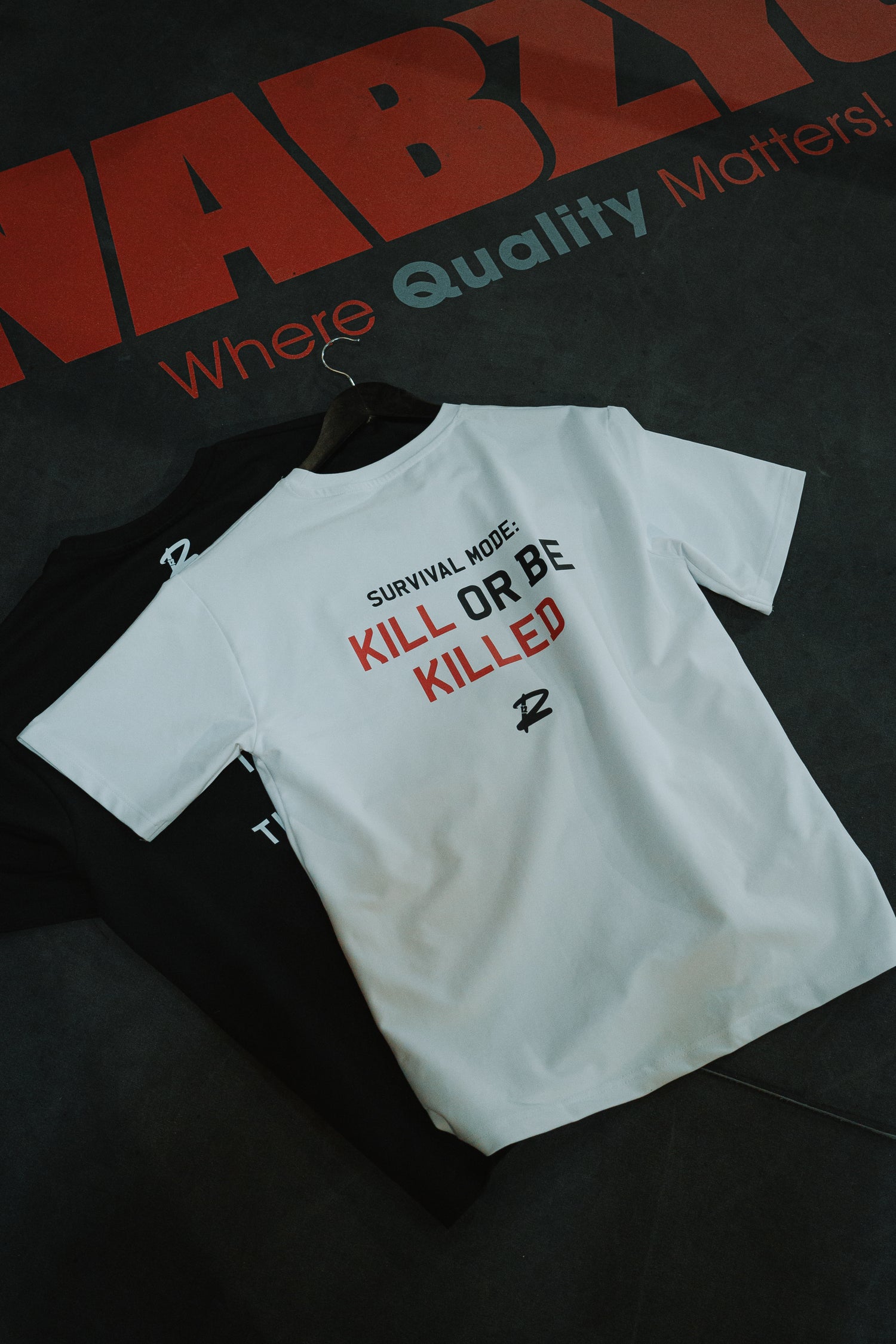 Survival Mode: Kill Or Be Killed Premium Oversized T-Shirt (White)
